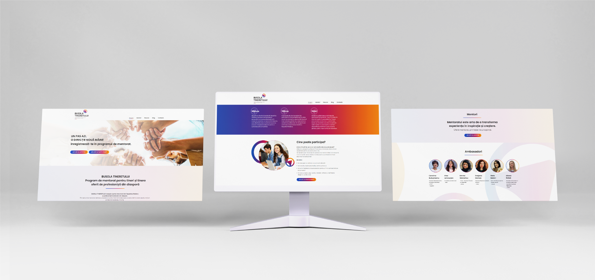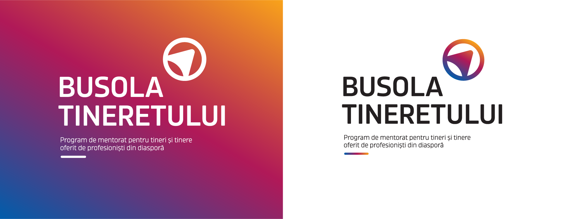 Idea: Simbol central – busola – reinterpretată minimalist, cu accente de culoare care exprimă optimism, creștere și siguranță. Linia grafică îmbină claritatea vizuală cu elemente dinamice, pentru a reda energia tinerilor și profesionalismul mentorilor. Identitatea susține poziționarea Busolei Tineretului ca spațiu de învățare, conexiune și transformare.